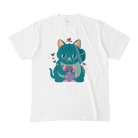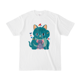 Tシャツ - XL - 白カラフルな緑の招き猫です 左手は人を招くと言われ、身につけると幸せになれるかも? この商品はpixivFACTORYで作られた商品です。サンプル画像は完成イメージのため、実物と異なる場合があります。