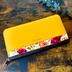 秋バラとコスモスの長財布(マスタード) 花 財布 長財布 バラ コスモス