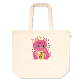 トートバッグ - L - プリント面積中右手をあげて金運を招く、カラフルなピンクの招き猫 このTシャツを着れば、直ちにお金持ち、、、、かも この商品はpixivFACTORYで作られた商品です。サンプル画像は完成イメージのため、実物と異なる場合があります。