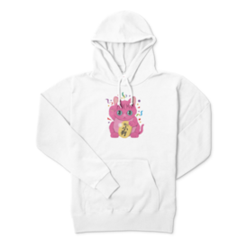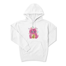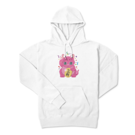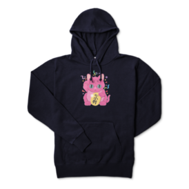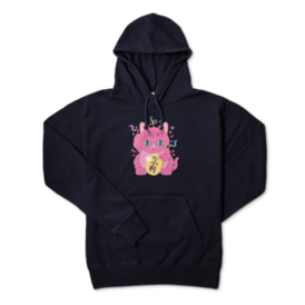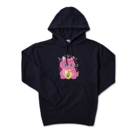 パーカー - XL - ネイビー右手をあげて金運を招く、カラフルなピンクの招き猫 このTシャツを着れば、直ちにお金持ち、、、、かも この商品はpixivFACTORYで作られた商品です。サンプル画像は完成イメージのため、実物と異なる場合があります。