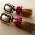 ビーズ刺繍とボリュームタッセルのイヤリング(スクエア/ゴールドレッド)