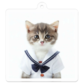 アクリルキーホルダー - 50 x 50 (mm)【かわいすぎる!】セーラーキャットが登場!可愛らしい子猫がセーラー服を着て、その愛らしい表情とまるでお人形さんのような姿に、見る人を虜にしちゃうこと間違いなしです!ふわふわの毛並みとセーラー服の相性も抜群で、ほっこり癒されちゃいます。ぜひこのセーラーキャットの魅力に心奪われてみてください! この商品はpixivFACTORYで作られた商品です。サンプル画像は完成イメージのため、実物と異なる場合があります。