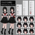サイズ:2000×4000px 解像度:350dpi 形式:PNG、PSD (zipファイルでのお渡しとなります) PSDは差分のパーツごとにレイヤー分けされているため、Photoshop/Photopea/ibisPaint等のツールで読み込み、レイヤーの表示/非表示を切り替えることで、同梱のPNG以外の差分パターンも作成できます。 ①A子(10点) ・表情差分PNG 9点+PSD 1点 ③B美(10点) ・表情差分PNG 9点+PSD 1点 ④C太(10点) ・表情差分PNG 9点+PSD 1点 ⑤D介(10点) ・表情差分PNG 9点+PSD 1点 ⑤全員セット(40点) ・A子(表情差分PNG 9点+PSD 1点) ・B美(表情差分PNG 9点+PSD 1点) ・C太(表示差分PNG 9点+PSD 1点) ・D介(表情差分PNG 9点+PSD 1点)