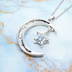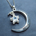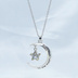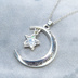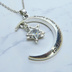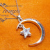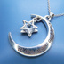 アンティークシルバー 三日月と星フレームのキュービックジルコニアをつり下げたペンダント・ネックレス 長さ調整可 アジャスター可