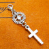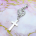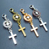 マスク・スマホチャーム アンティークシルバー ロザリオ(十字架)と歯車のコンパクトなチャーム 金具変更可 ジャックピン追加可