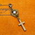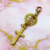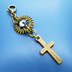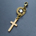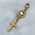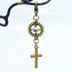 マスク・スマホチャーム アンティークゴールド ロザリオ(十字架)と歯車のコンパクトなチャーム 金具変更可 ジャックピン追加可