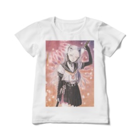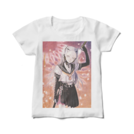 レディースTシャツ - L - 白「武者絵展」のSNS告知用に描いた絵です。 作画時期:2017年夏 この商品はpixivFACTORYで作られた商品です。 サンプル画像は完成イメージのため、実物と異なる場合があります。