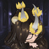 A set of horns, each with a crown dangling from it. The horns and crowns can be individually separated or deleted in the editor easily. The piece is considered an ahoge under hairstyles. The crowns can move and dangle slightly, while the horns are firm and still. You can see it in motion on my VRoid Hub model (Zente Lucifer) or on my YouTube or TikTok.