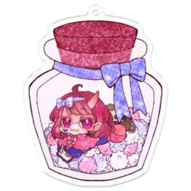アクリルキーホルダー - 70 x 70 (mm)裏眼デルさんデザイン! 瓶詰め金平糖の上でゴロゴロしながら絵を描いているみそするです。 ※この商品はpixivFACTORYで作られた商品です。サンプル画像は完成イメージのため、実物と異なる場合があります。