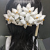 ご覧頂きありがとうございます。 一越ちりめんを使ったつまみ細工の百合のコームのセットです。 是非 写真をタップして全体が見えるようにしてご覧下さい。 ✩百合の花が6輪の29足の大きなコーム飾り ✩単独で飾れる小花のUピン4輪 ✩ビーズの下がり飾りのUピン ✩タッセル飾りのUピン 結い髪はもちろん ハーフアップにコーム飾りを単独で飾ったり Uピンもセットになっているので どんな髪形のアレンジにも対応できます。 タッセル飾りとビーズの下がり飾りにはカニカンが付いており コームの右側にもUピンにも付けられる仕様になっています。 Uピンで飾ることも コームと一緒に飾る事もできます。 白い百合の髪飾りなので和装、洋装どちらでもお使い頂けると思います♪ 結婚式や成人式、卒業式などの髪飾りにいかがでしょうか? 〖サイズ〗 ※コーム飾り全体の大きさ 16cm×9cm ※百合の花 直径 5cm ※タッセル飾り 9cm ※ビーズ下がり飾り 10.5cm ※29足コーム 11cm×4cm ※Uピンの長さ 7cm (タッセルとビーズの下がりの長さはUピンを除いた長さです) 1つ1つ丁寧にお作りしていますが 素人による手作り作品ですので接着剤のハミ出しや歪み等がある場合があります。 ご理解頂けると幸いです。 ちりめん生地は水に弱く濡れると縮んでしまいます。 また長時間の圧迫でも変形してしまいます。 ご使用時や保管には十分にご注意ください。 実際の色はお使いのモニターによって多少異なって見えることがあります。 ご了承ください。 発送は郵便局からの定形外郵便での発送になります。 土日、祝日の発送は出来ません。