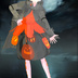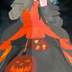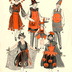 Trick or Treat roaring 1920s style. This vintage pattern design incudes pumpkin top with semi see through cape, pumpkin patch skirt, 20s feathered cap, pumpkin stockings and orange 20s pumps.