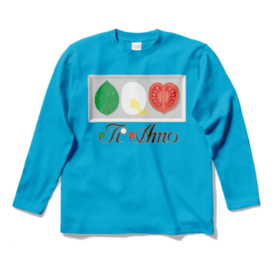 ロングスリーブTシャツ - XL - ターコイズイタリアンカラー🇮🇹のカプレーゼと❤️愛してるTi Amoの文字を組み合わせた🌱フレッシュなイラスト&ロゴデザインです この商品はpixivFACTORYで作られた商品です。サンプル画像は完成イメージのため、実物と異なる場合があります。