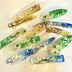 モンド イメージ グリーン ヘアクリップ スクエア 2個セット 左右や上下どちらの向きでもお使い頂けます。 モンド、璃月、稲妻、スメール、フォンテーヌのデザインがあります。 ✳︎サイズ、カラーなど✳︎ ヘアピン全体の長さ 形 長方形 太い方約7cm ×1.5cm 細い方7cm×1cm お色味 グリーンとシルバーのラメ 羽モチーフ クリップの色味 ゴールド レジン仕上げ