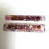 ヘアピン全体の長さ 形 長方形 太い方約7cm ×1.5cm 細い方7cm×1cm お色味 紫、ピンクとシルバーのラメ 月や蝶、銀杏モチーフ シルバーのストーンで 集められる神の目のイメージ クリップの色味 ゴールド レジン仕上げ