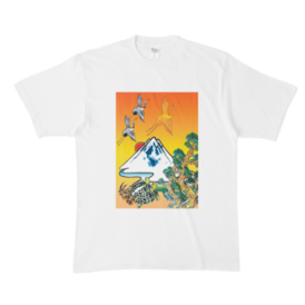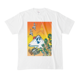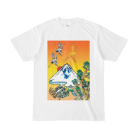 白Tシャツ:黄金富士親子鶴亀-2