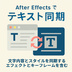 After Effectのテキストレイヤーのテキストコンテンツとスタイルを同期させます。 在After Effect 中同步文字圖層的文字內容與樣式的腳本外掛。 Synchronizes the text content and style of a text layer in After Effect. 更新履歷 Text Synchronizer V2 (2024/06/24) 【免責事項】 お客様は、自らの責任において、素材をダウンロードし、これを使用することに同意します。 素材の利用によってお客様に何らかの損害が発生したとしても、損害賠償義務及びその他一切の責任を負いません 不具合等により生じたいかなる損害に関しましては一切責任を負いませんのでご了承ください。 Any problems caused by the use of this file are at your own risk and responsibility.