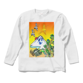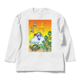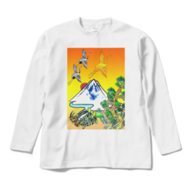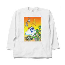 縁起長袖シャツ:黄金富士親子鶴亀-2