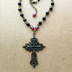 ---------------------------------------------------------------------------------- こちらは【エアブー感謝祭-231027-】に出品の作品です。 ハロウィン・カーニバル・ゴシック・魔女っぽいイメージのアクセサリーを中心に作りました。 ※デザイン変更しました※ ---------------------------------------------------------------------------------- 大きな十字架モチーフをメインに、天然石のガーネットを添えたゴシックなネックレスです。 ※金属アレルギー、メッキ加工が肌に合わない方は注文をお控えください。 【サイズ等の仕様】 全体長さ チェーンのみで約48cm