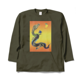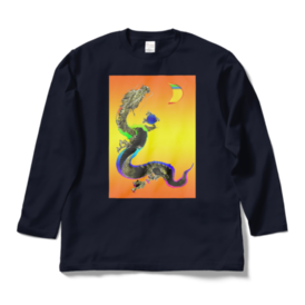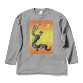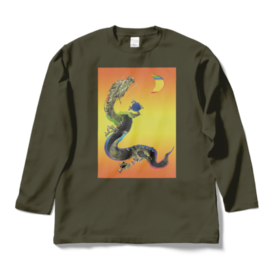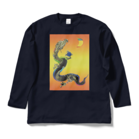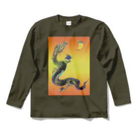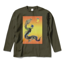 縁起ロングスリーブTシャツ・色各種:黄金月下昇龍01