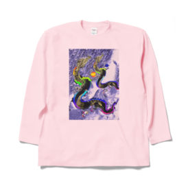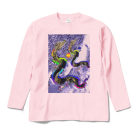 縁起長袖Tシャツ・ピンク:二頭昇龍