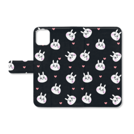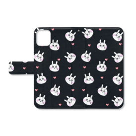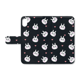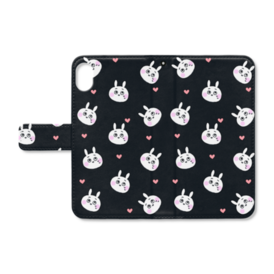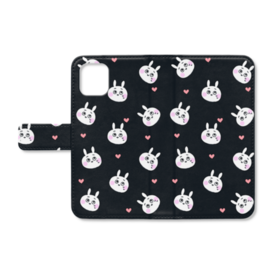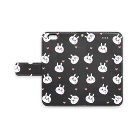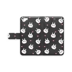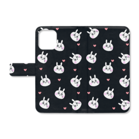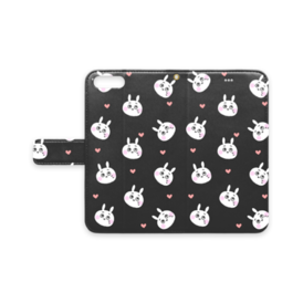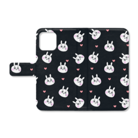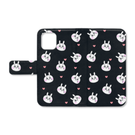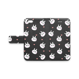 ミニまゆげうさぎ 手帳型iPhoneケース グレーブラック