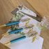 ハーバリウムボールペンに、自作のループタイを入れて、レジンで固めました。 水に入ったループタイをイメージして作ったので、あえて気泡はそのままにしています。 画像1.2枚目が商品の写真となります。 (3.4枚目は前回出品のもの) 気泡の入り方に個体差があり、水泡少なめversionも同時出品しております。 素人が作ったハンドメイド品になります。 市販品のような強度は ありません。 ご了承のうえ、購入お願い致します。 よろしくお願い致します(*´꒳`*) 今回からあんしんBOOTHパックでの配送となり、送料のお値段が上がりますので おまけで翼の形のボールペンについている ものと同じもののチャームをお付けします。 重ねてよろしくお願い致します。