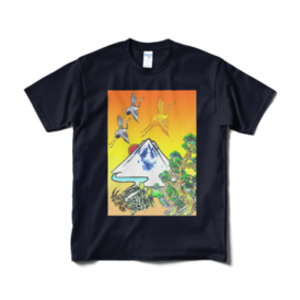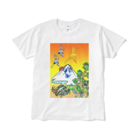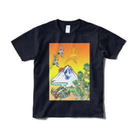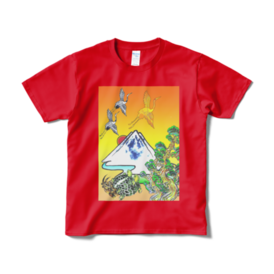 縁起Tシャツ(短納期):親子鶴亀松富士