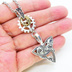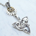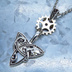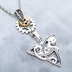 トライアングル形状にフォックス(狐)が顔を出すモチーフに歯車を組み合わせたスチームパンク風ネックレスです アンティークシルバーの歯車にアンティークゴールドの小さな歯車を組み合わせてアクセントを加えています 全体的にシルバーカラーでまとめることで華やかさと落ち着きのある仕上がりになっています バチカン(ペンダントとチェーンをつなぐ金具)もデザイン性のあるパーツを採用しています ※長さは約50cmですが、55cm、60cmに延長が可能です ※アジャスター(約5cm)を追加できます 「素材」 モチーフ:亜鉛合金・メッキ加工 チェーン:鉄製・メッキ加工 金具:スチール・合金 「寸法」 ペンダント:約25mm×30mm 歯車:直径約18mm チェーン:約50cm 重量 約17.6グラム ※ご使用のモニターの色の違いにより、実際の商品と色味が若干異なる場合がございます。予めご了承ください NA-NK168