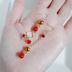 スクエアフープの下部分に赤とミルキーベージュ色の小さめサイズのガラスビーズをちょこんと合わせた可愛らしいデザインとこっくりした赤色のチェコビーズを一番下に配置したシンプルなデザインをセットで1ペアにしたアシンメトリーピアスとなっております。 メインのお色は秋の紅葉をイメージした赤とトパーズ色の2色、ゴールド金具と合わせてキラキラと光るガラスビーズとつるんとした光沢のチェコビーズがとっても素敵な作品に仕上げました♪ 秋らしい色合いがお好きな方やアシンメトリーな作品が好きな方に特におすすめの作品となっております☆ アレルギー対応のピアスやイヤリングへの変更についてはご注文時にオプションよりご希望金具をお選び下さい☆ <スクエアフープの紅葉カラーのピアス> ☆チェコビーズ ボルドー ラウンド型 6mm玉 ☆ガラスビーズ フルコートゴールド ボタンカット 6mm ☆ガラスビーズ ブライトレッド ボタンカット 6mm ☆ガラスビーズ レッド ボタンカット 4mm ☆ガラスビーズ ミルキーベージュ フラットコイン 4mm ☆ファイアポリッシュチェコビーズ トパーズ 4mm ☆スクエアフープ ゴールド ☆座金 ゴールド ☆スペンサー ゴールド <紅葉カラーのシンプルピアス> ☆チェコビーズ ボルドー ラウンド型 6mm玉 ☆ガラスビーズ フルコートゴールド ボタンカット 6mm ☆ガラスビーズ レッド ボタンカット 4mm ☆ファイアポリッシュチェコビーズ トパーズ 4mm ☆スクエアフープ ゴールド ☆座金 ゴールド ☆スペンサー ゴールド ☆9ピン ☆Tピン ☆丸カン ☆ピアス用金具(フック式☆ゴールド) 長さは約6cm&5cmとなっております。(1cm程のピアス金具を含む)