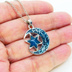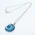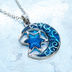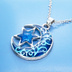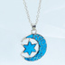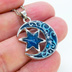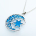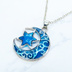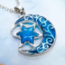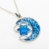 アンティークシルバー アラベスク調の透かし模様の三日月と星のブルーカラーペンダントネックレス レジン 長さ調整可 ステンレス可