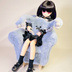ドールサイズ シングルソファ ちびもふマン付き ダストブルー×グレー