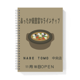 とも国の鍋店NABETOMOの新店オープンポスター風のノートを作りました。 TOMO ==================== credit:メンバーワーク TOMO https://twitter.com/densya225227 ==================== "EUREKA PROJECT" 「障がいの壁は消えた」をテーマに掲げた複合コンテンツブランド。 就労支援事業のDIGITAL ART CENTERが主導となって制作を行う。 障がいを持つ方、特性を持つ方、「その人」の世界の魅力に壁は不要。 境界を持たない創作を、世の中へ発信します。 EUREKA PROJECTの利益は、DIGITAL ART CENTERに通う就労困難な方への報酬に充てられます。 ▼購入商品のツイートは #EUREKAPROJECT のハッシュタグで✨ ====================
