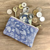 【小鳥と花と・・・】畳縁 ぺたんこ ミニポーチ 小銭入れ カードケース 薄花色 ブルーグレー 大人可愛い