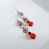 しずくが揺れるオーバルフープとチェコビーズと四葉のクローバーのピアス/イヤリング(秋色レッドパープル)