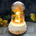 鉱物ランプ『黄』中・水晶・リモコン切替点灯 天然石を使って作られたランプです。 黄のイメージ。明るい。前向きな。快活な。活発な。光。太陽。陽気。シトリン。 メインに水晶を使っております。 シトリンは11月の誕生石でもあります。 鉱物標本として飾るもよし。水晶の結晶は明かりをつけるとまた違った表情を見せます。 ドームの底に磁石がついていて、台座にくっつく仕組みです。 点灯色をリモコンで切り替えられます。 明るさを調整できます。 13色のカラーボタン:対応した色に点灯します。 SMOOTH:13色で滑らかな切り替え点灯 FLASH:13色で点滅しながら切り替え点灯 30MIN:30分のタイマー 60MIN:60分のタイマー 動力:単4電池。底のふたをあけると電池があります。 本体:単4電池×3(ついています) リモコン:CR2025ボタン電池(ついています) 直径:8.5cm 高さ:14cm 素材:水晶、シトリン、ドライフラワー、樹脂粘土、プラスチック製ドーム、LEDライト