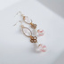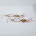 しずくが揺れるオーバルフープとチェコビーズと四葉のクローバーのピアス/イヤリング(淡いピンクピーチ)