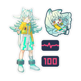 ステッカー - 100 x 100 (mm)マキモリ・ラヴァルの公式立ち絵と描き下ろしイラストで制作したクリアステッカーです。 【絵柄】 ・公式立ち絵×1 ・描きおろしミニキャラ×1 ・アウターの液晶×2 ※仕様上、カットラインがくっついたものしか作れないので、画像3枚目をご参考にハサミでカットするのがオススメです! この商品はpixivFACTORYで作られた商品です。サンプル画像は完成イメージのため、実物と異なる場合があります。