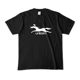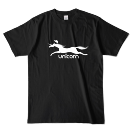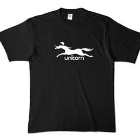 カラーTシャツ - XL - ブラック (濃色)まるで日本人大リーガーのような雄大な姿で、大きく四肢を伸ばしダイナミックにターフを駆け抜けるユニコーンをデザインしました 淡色ボディ用のユニコーン(黒)もあります この商品はpixivFACTORYで作られた商品です。サンプル画像は完成イメージのため、実物と異なる場合があります。