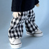 オビツ11/ピコドー9兼用のワイドパンツになります(o^^o) 足のパーツを外して履かせてあげてくださいね。 黒チェックの柄の出方はランダムになります。 生地の都合でお値段が異なりますので、ご注意ください。 ★ご購入前に確認をお願いします★ 丁寧にお作りしていますが、素人のハンドメイド作品ですので、既製品とは異なります。 歪みや縫い目のズレ等至らない点があるかもしれません。 ご使用の端末などによって色が異なって見える可能性があります。 布用接着剤を一部使用していますので、洗濯や強く引っ張るなどの行為はお控えくださいませ。 色の濃いお洋服は長時間着せたままにしますと色移りの可能性があります。 ハンドメイド作品ですので、ご理解のある方よろしくお願いします。 撮影小物は含まれません。 転売・複製目的の購入はお控えください。 obitsu11/PICCODO9/ wide pants Please remove the foot parts and put them on. ★ Please check before purchasing★ Although it is carefully made, it is handmade by amateurs, so it is different from ready-made products. There may be points that do not lead to distortion or seam misalignment. Colors may look different depending on your device. Since some fabric adhesive is used, please refrain from washing or pulling strongly. If you leave dark colored clothes on for a long time, there is a possibility of color transfer. Since it is a handmade work, thank you for your understanding. Photo props are not for sale. Please refrain from purchasing for the purpose of resale.