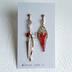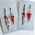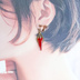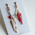 アクリルインクで模様を描いたアクリルインクアートシリーズです。 まず原画を作成し、最も良い模様の場所を切り取ってアクセサリーに加工するため 同じ色味または模様が一つと無い、世界で一つのアートアクセサリーです。 鮮やかなレッドにゴールドの不規則なラインが入ったパーツと、(元)騎士をイメージした円錐スティックのアシンメトリーイヤリングです。