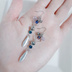 シャープな形とつるんとしたシルバー色の光沢が素敵なチェコダガービーズをメインにスクエアフープやファイアポリッシュチェコビーズなどを合わせたお洒落なロングピアス/イヤリングとなっております♪ メインのお色は凛としたカッコいいシルバーとブルー色、シルバー金具と合わせて涼しげでユニセックスな色合いに仕上げました☆ スクエアフープの上部にはお色が異なる小さめサイズのファイアポリッシュチェコビーズとガラスビーズが3つちょこんと揺れている可愛い感じにまとめました♪ ※こんな方におすすめ♪ *大切な方へのプレゼントに *揺れるピアスがお好きな方に *軽い着け心地をご希望の方に *カッコいい系のお色がお好きな方に ☆チェコダガービーズ エッチドシルバー 15x6mm ☆ガラスビーズ フルコートシルバー ボタンカット 6mm ☆ガラスビーズ メタリックブルー ボタンカット 4mm ☆ファイアポリッシュチェコビーズ タンザナイト 4mm ☆ガラスビーズ フルコートシルバー ボタンカット 4mm ☆ファイアポリッシュチェコビーズ クリアブルー アメジスト 4mm ☆スクエアフープ シルバー ☆スペンサー ☆9ピン ☆Tピン ☆三角カン ☆丸カン ☆ピアス用金具(フック式☆シルバー) 長さは約5.5cmとなっております。(約1cm程のピアス金具を含む)