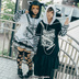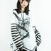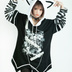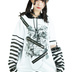 Jillpunk パンクロック V系 バンギャ エラーコマンド ボーダー柄 クロス鎖チェーン付き チャック ゆったり アームカバー 半袖 猫耳パーカー オリジナル メンズ レディーズ おしゃれ男女兼用 原宿 秋葉系 ファッション カッコいい