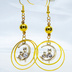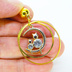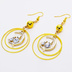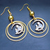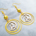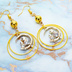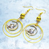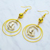 ゴールドカラー ダブルフープリングと猫の親子が乗る三日月モチーフのピアス ラインストーン サージカル可
