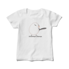 レディースTシャツ - L - 白古代魚「サカバンバスピス」そっくりなアホ顔で新種のシマエナガ「サカバンバスピスシマエナガ」の可愛いデザインイラストです 濃色ボディ用もあります この商品はpixivFACTORYで作られた商品です。サンプル画像は完成イメージのため、実物と異なる場合があります。