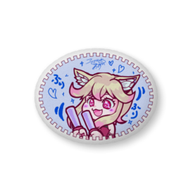 がんばって自分で描いたTwitchスタンプのイラストを使ってのクッションだよ。素敵な背面のロゴは、こはる ✿ Designさんデザイン! この商品はpixivFACTORYで作られた商品です。サンプル画像は完成イメージのため、実物と異なる場合があります。