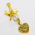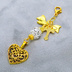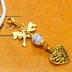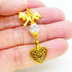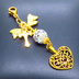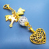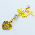 マスク・スマホチャーム ゴールドカラー 透かし模様のハートチャームとメタルビーズのチャーム 金具変更可