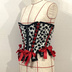 ダルメシアン柄のボア生地を使用したビスチェになります。 ハトメ部分にはプラスチックボーンを縫い込んでいます。 人体に沿うパターンで作っているため、 コルセットのような括れ感・締め付け感はありません。 ※ハンドメイド製品となります