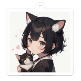 ね子ちゃんと子ネコ だっこ アクリルキーホルダー