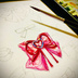 ご成約済【ミニ色紙原画】『リボン天國』透明水彩