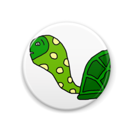 缶バッジ - 44mm"かめまる"の缶バッジです。チラッとこっちを見ています。